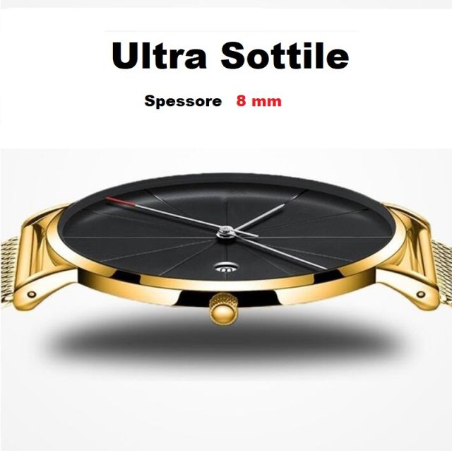 Estremamente elegante e sottile, leggerissimo, precisissimo grazie al suo movimento al quarzo di qualitą superiore.