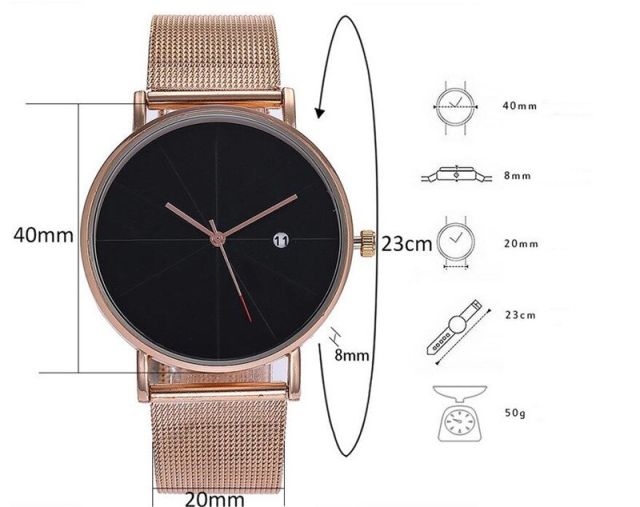 Misura della cassa 40mm che lo rende elegante e ben visibile adattandosi sia ad un polso maschile che femminile.